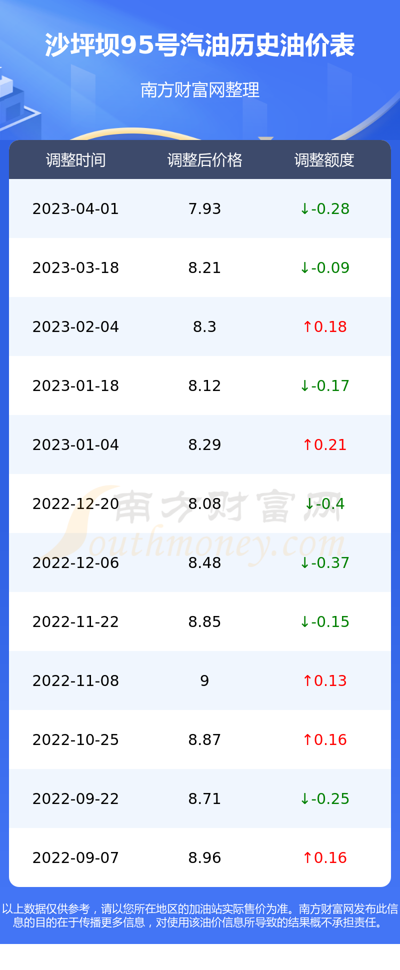 沙坪坝95号汽油历史油价表