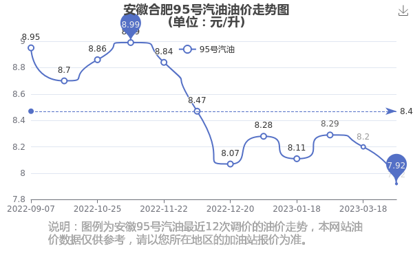 安徽合肥95号汽油历史油价走势图