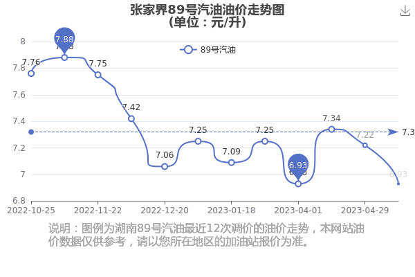 张家界89号汽油历史油价走势图