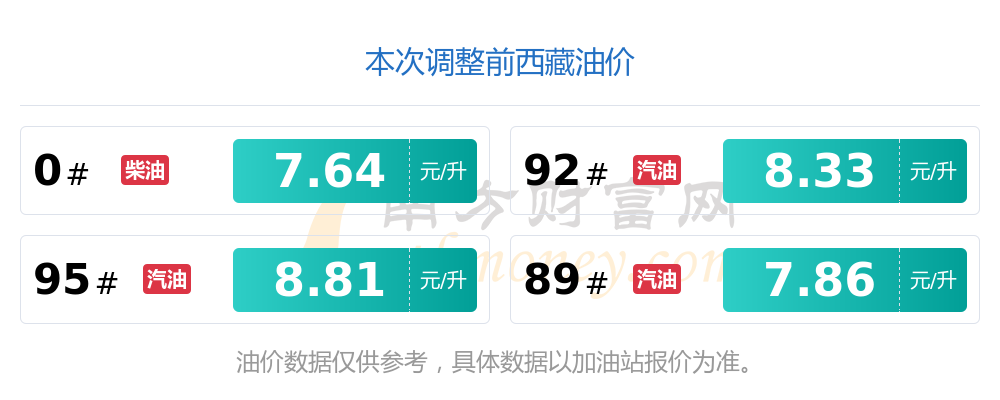 油价数据仅供参考,请以您所在地区的加油站报价为准。油价发布此信息的目的在于传播更多信息,对使用该油价信息所导致的结果概不承担任何责任。