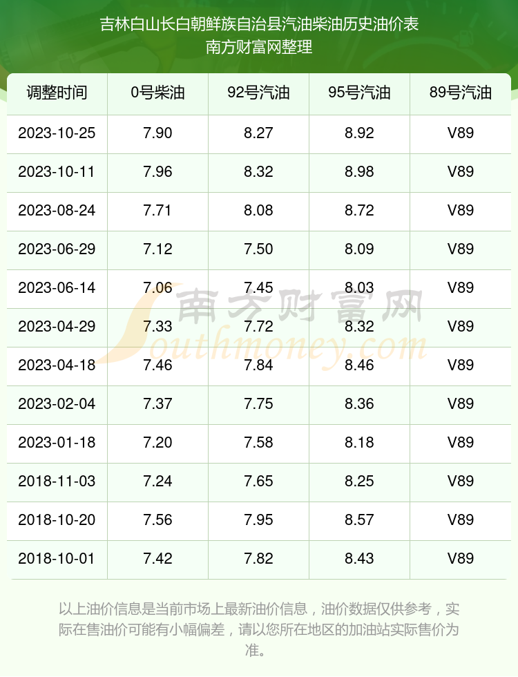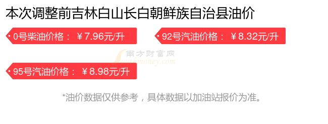 吉林白山长白朝鲜族自治县历史油价表