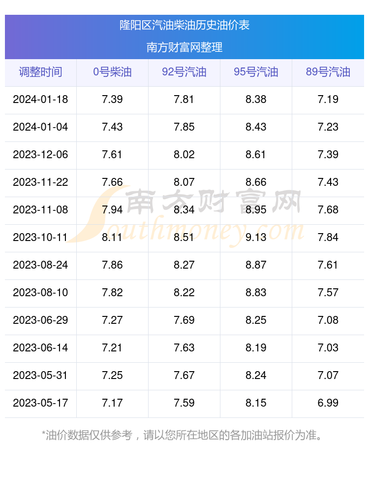 隆阳区历史油价表