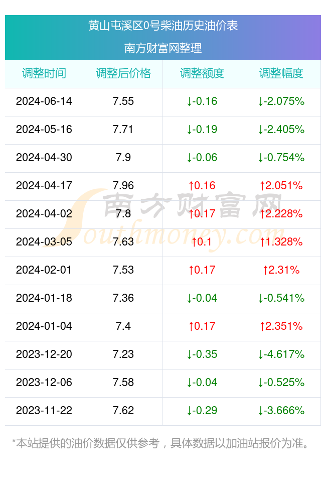 本站提供的油价数据仅供参考,具体数据以加油站报价为准。