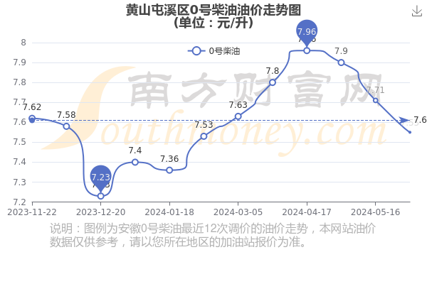 6月25日黄山屯溪区0号柴油价格:7.55元每升,调整时间为6月14日,相对上次调整下调了0.16元。
