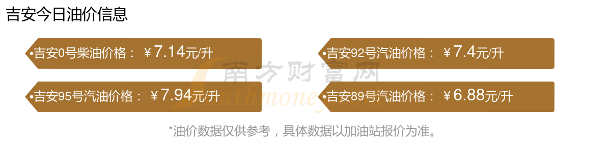 吉安汽油柴油11月17日每升的价格为11月7日调整后的价格,各油价详情如下:92号汽油7.4元;95号汽油7.94元;89号汽油6.88元;0号柴油7.14元。