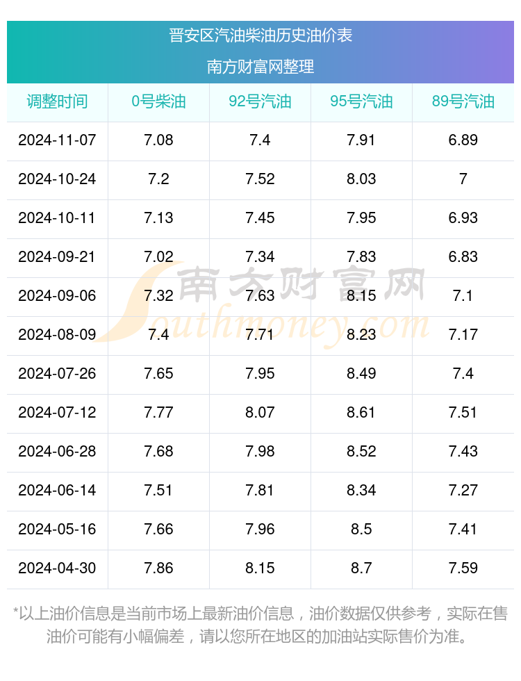 晋安区历史油价表