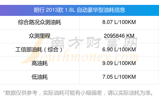 数据仅供参考,一般现实油耗与测试值会有差异,请以实际油耗为准。