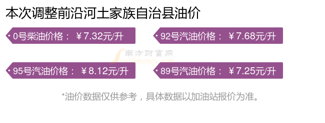 11月24日沿河土家族自治县汽油柴油每升的价格为11月7日调整后的价格,具体如下:92号汽油7.57元;95号汽油8元;89号汽油7.14元;0号柴油7.2元。