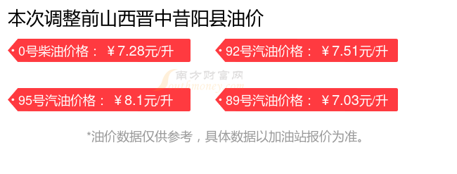 以上油价信息是当前市场上最新油价信息,油价数据仅供参考,实际在售油价可能有小幅偏差,请以您所在地区的加油站实际售价为准。