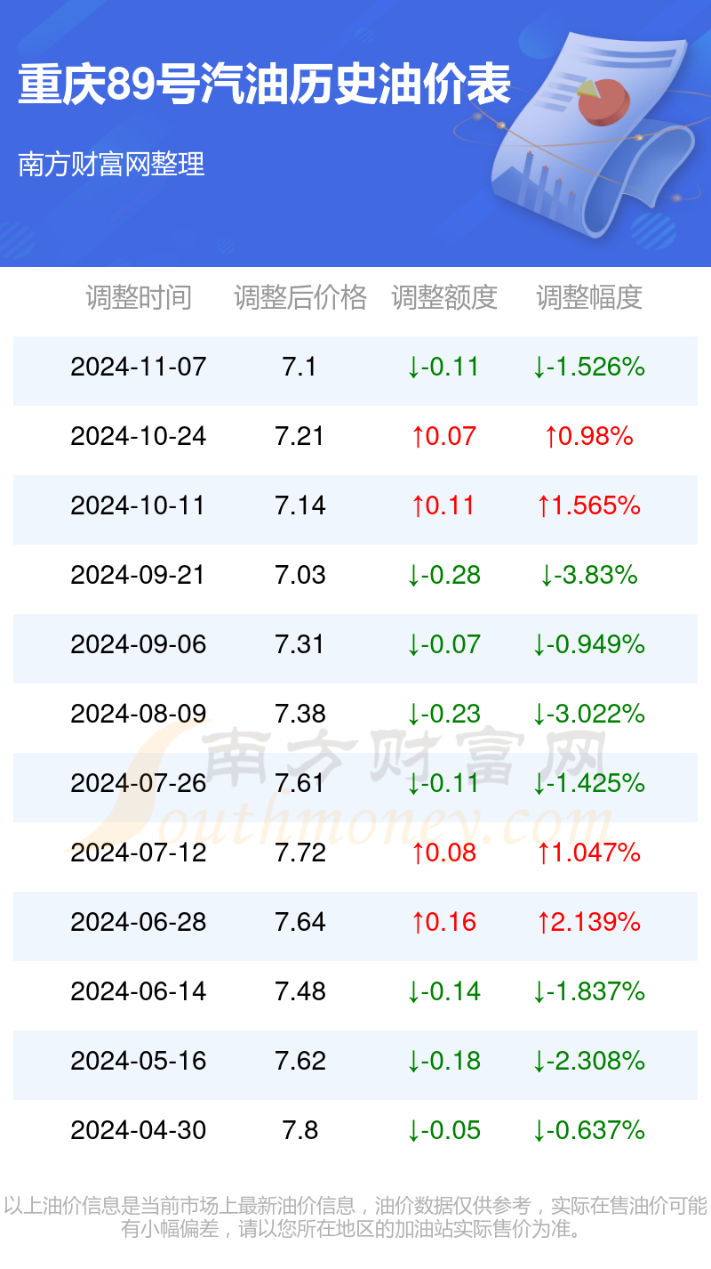重庆89号汽油历史油价表