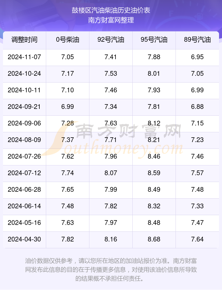 鼓楼区历史油价表