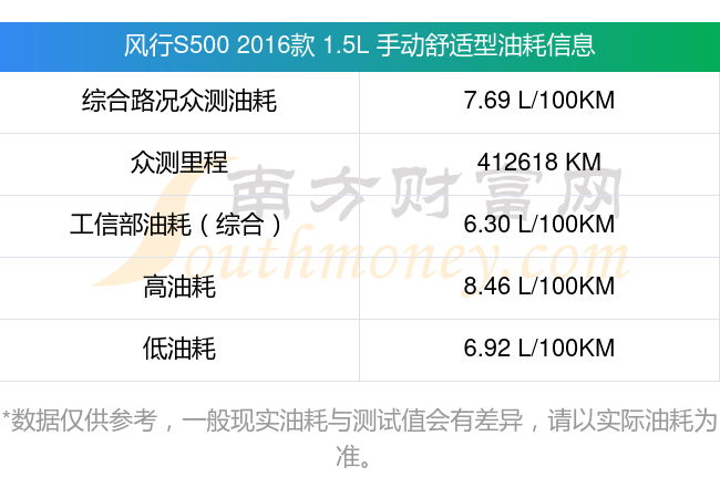 根据多位车主实测得出数据,该车型低油耗为6.92升每百公里,高油耗为8.46升每百公里,综合路况众测油耗为7.69升每百公里,工信部综合油耗为6.30升每百公里。