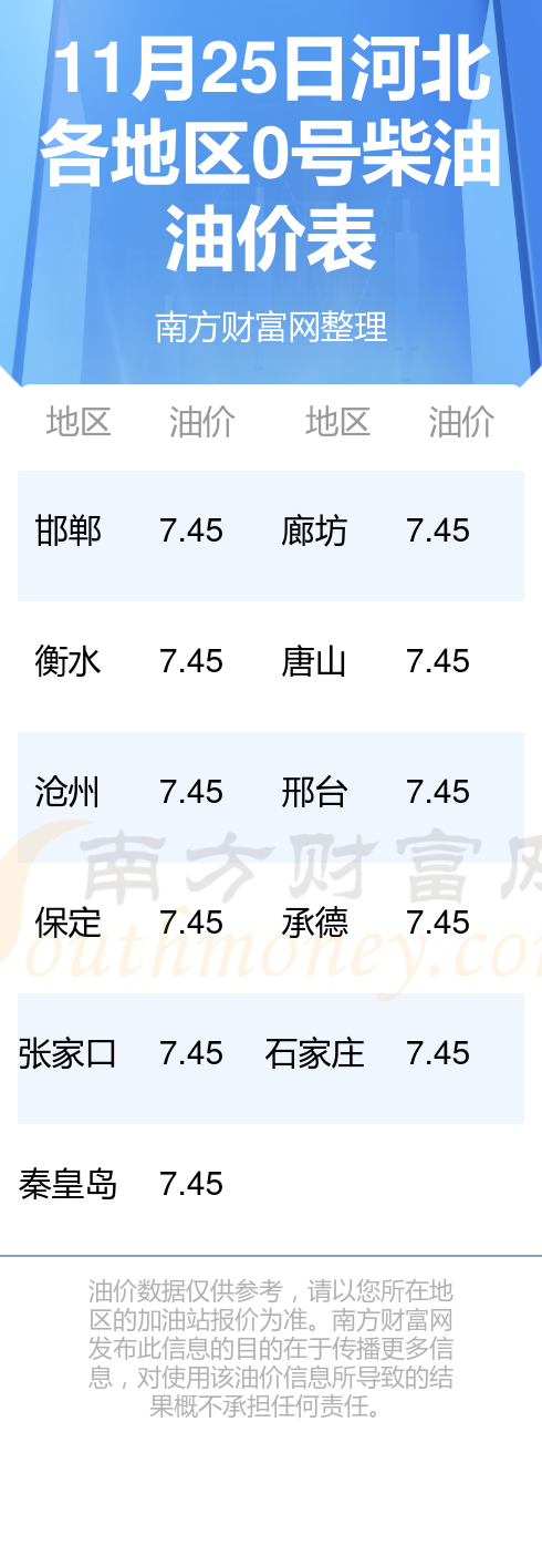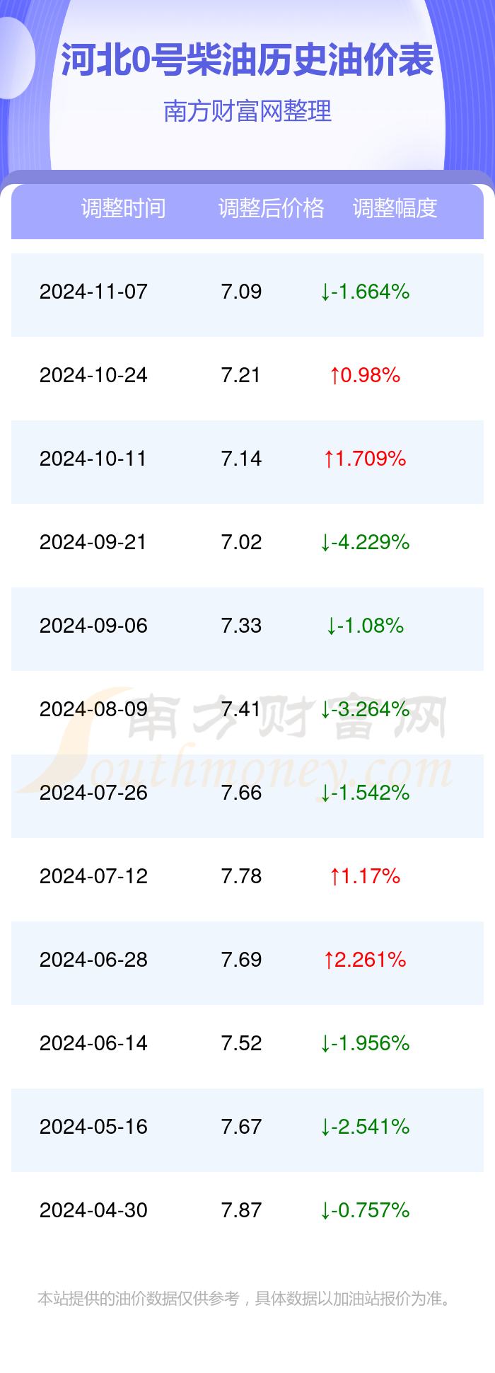 11月25日,河北0号柴油的价格是11月7日调整后的价格,为7.09元每升,对比上一轮油价调整共跌了0.12元。