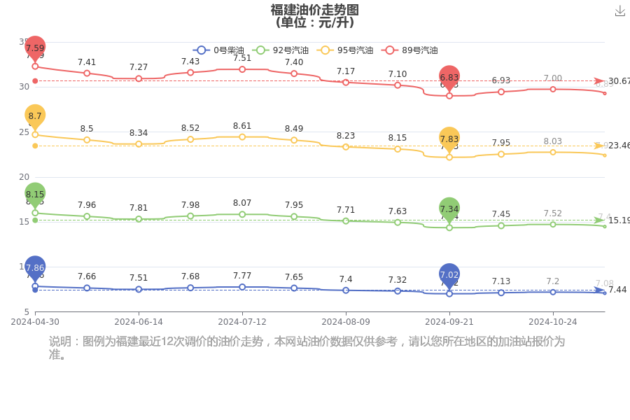 本站提供的油价数据仅供参考,具体数据以加油站报价为准。
