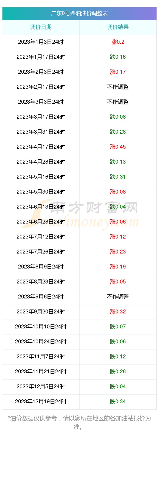广东0号柴油油价调整表