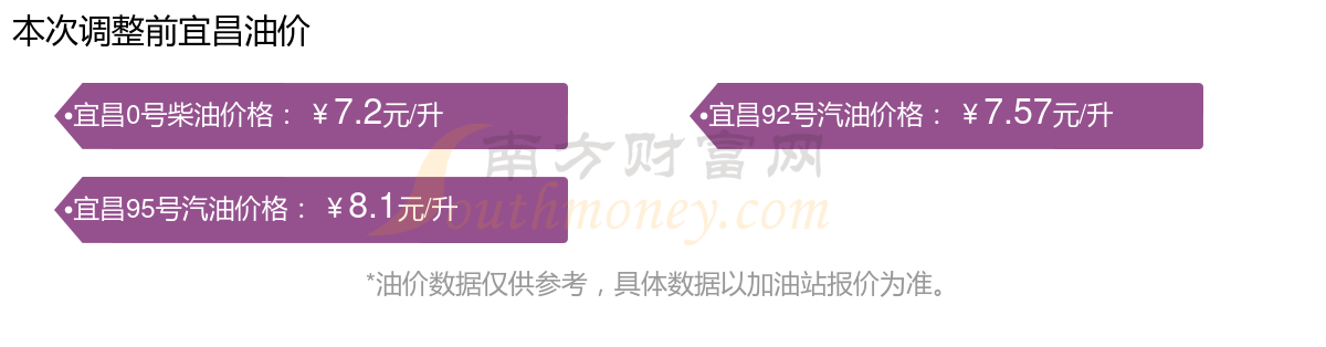 11月25日,宜昌汽油、柴油每升的价格为11月7日调整后的价格,具体为:92号汽油为7.45元,减了0.12元,减幅达1.59%;95号汽油为7.97元,减了0.13元,减幅达1.61%;0号柴油为7.08元,减了0.12元,减幅达1.67%。