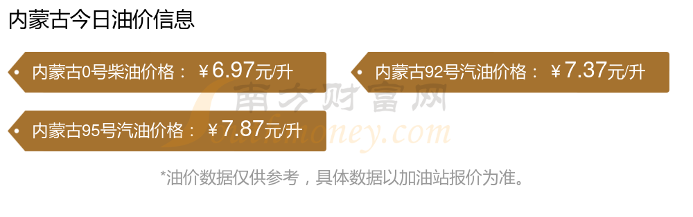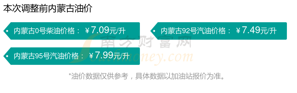 以上数据仅供参考,请以您所在地区的加油站实际售价为准。油价发布此信息的目的在于传播更多信息,对使用该油价信息所导致的结果概不承担责任。