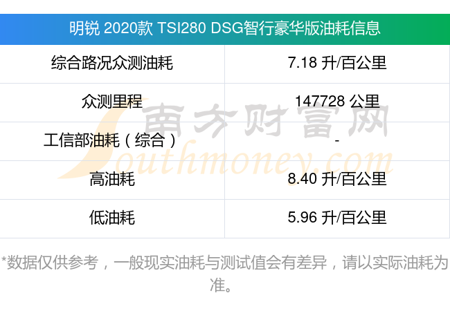 根据车主实测数据,该车型低油耗为5.96L/100km,高油耗为8.40L/100km,综合路况众测油耗为7.18L/100km,工信部综合油耗为-L/100km。