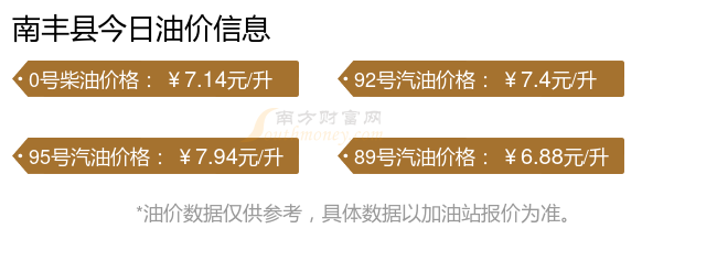 南丰县汽油、柴油11月25日每升的价格(油价调整时间11月7日):92号汽油7.4元;95号汽油7.94元;89号汽油6.88元;0号柴油7.14元。