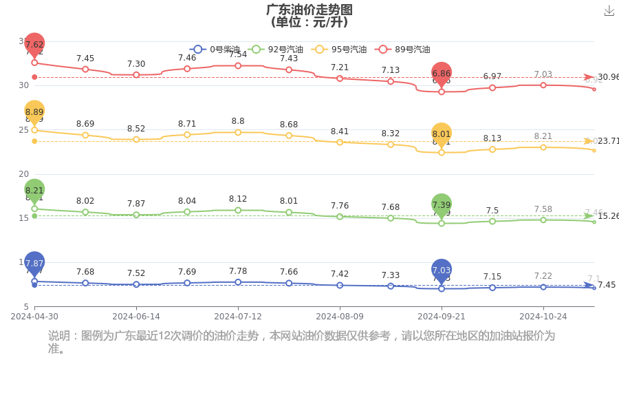 油价数据仅供参考,请以您所在地区的各加油站报价为准。