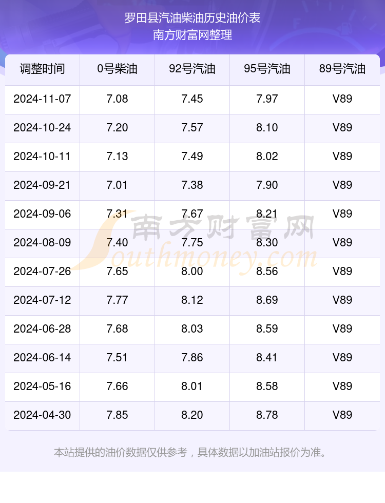 本站提供的油价数据仅供参考,具体数据以加油站报价为准。
