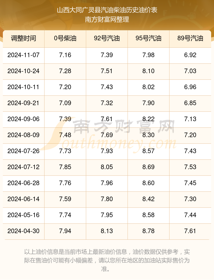 以上数据仅供参考,请以您所在地区的加油站实际售价为准。油价发布此信息的目的在于传播更多信息,对使用该油价信息所导致的结果概不承担责任。