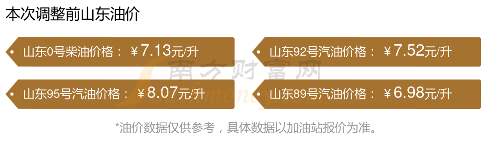 11月26日山东汽油、柴油每升的价格为11月7日调整后的价格,92号汽油为7.4元,跌了0.12元,跌幅达1.6%;95号汽油为7.94元,跌了0.13元,跌幅达1.61%;89号汽油为6.88元,跌了0.1元,跌幅达1.43%;0号柴油为7.01元,跌了0.12元,跌幅达1.68%。