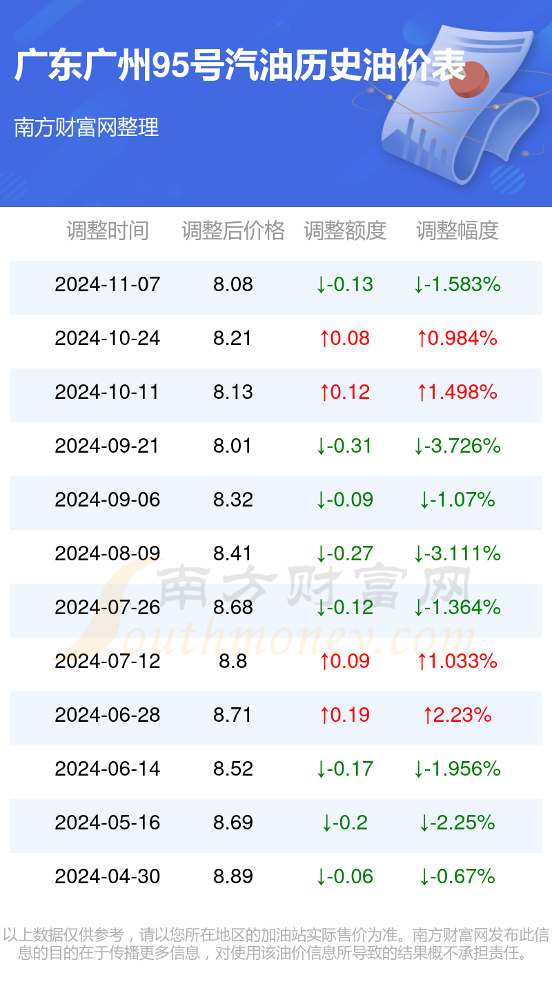 油价数据仅供参考,请以您所在地区的加油站报价为准。油价发布此信息的目的在于传播更多信息,对使用该油价信息所导致的结果概不承担任何责任。
