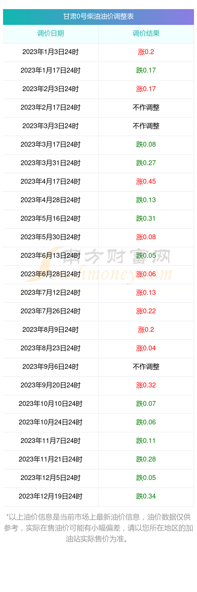 甘肃0号柴油油价调整表