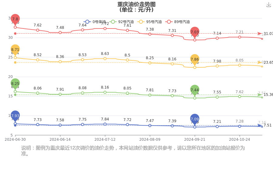 油价数据仅供参考,请以您所在地区的各加油站报价为准。
