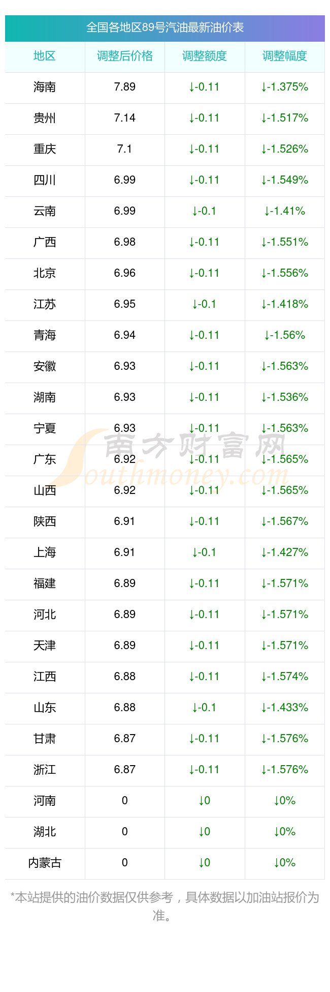 本站提供的油价数据仅供参考,具体数据以加油站报价为准。
