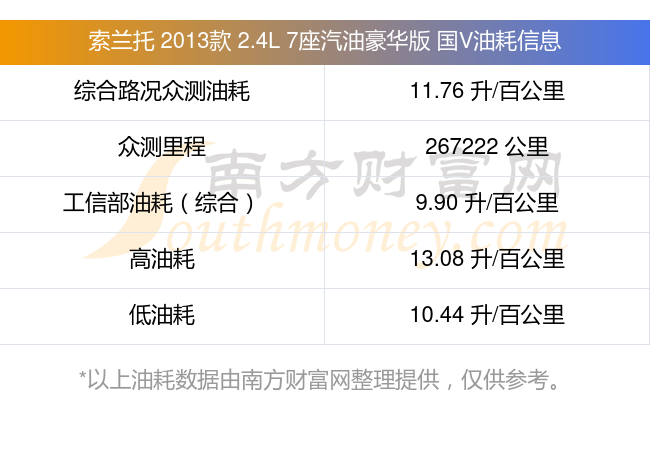 根据车主实测数据,该车型低油耗为10.44L/100km,高油耗为13.08L/100km,综合路况众测油耗为11.76L/100km,工信部综合油耗为9.90L/100km。