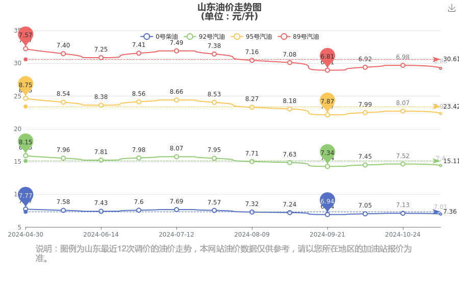 本站提供的油价数据仅供参考,具体数据以加油站报价为准。