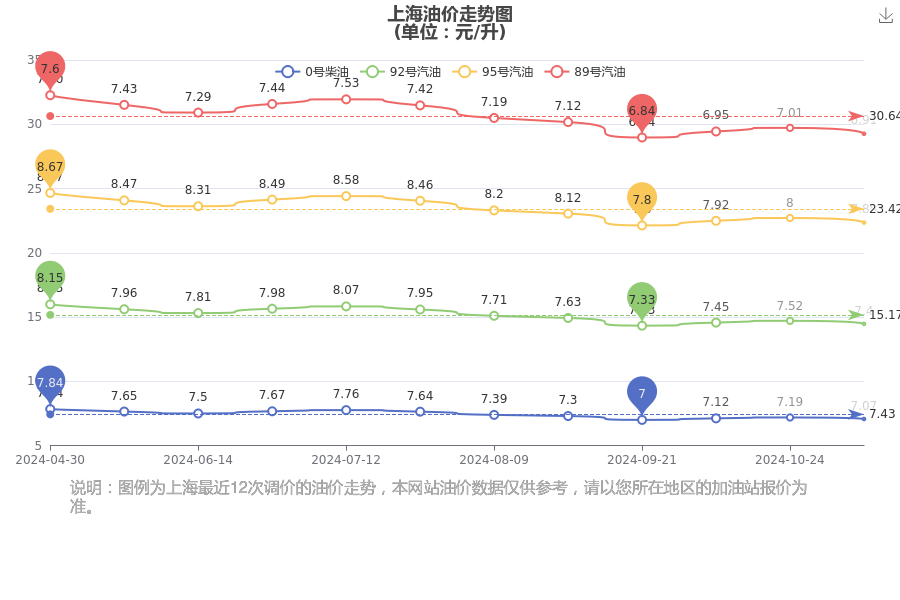 以上油价信息是当前市场上最新油价信息,油价数据仅供参考,实际在售油价可能有小幅偏差,请以您所在地区的加油站实际售价为准。