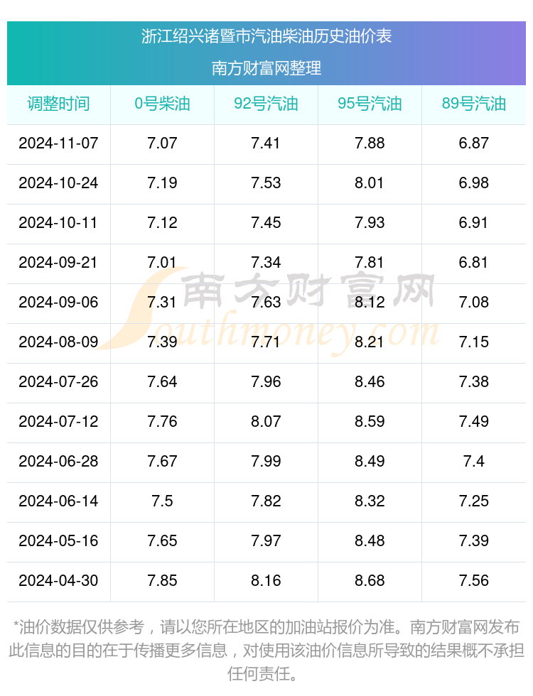 本站提供的油价数据仅供参考,具体数据以加油站报价为准。