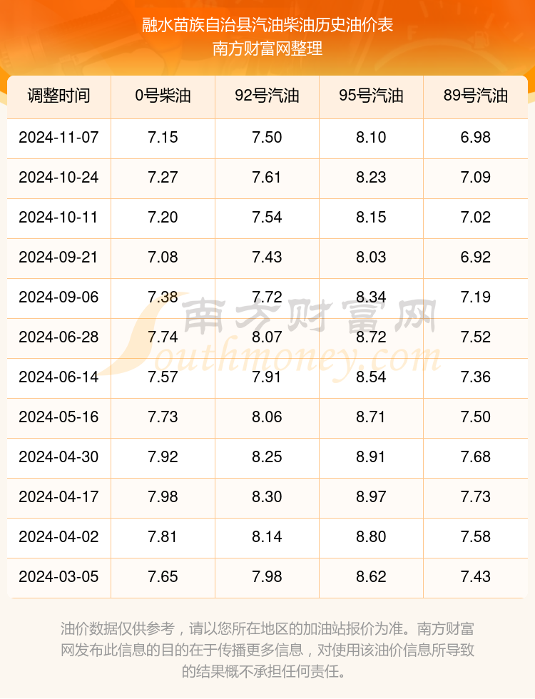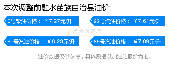 油价数据仅供参考,请以您所在地区的加油站报价为准。油价发布此信息的目的在于传播更多信息,对使用该油价信息所导致的结果概不承担任何责任。
