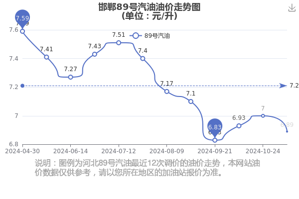 邯郸89号汽油历史油价走势图