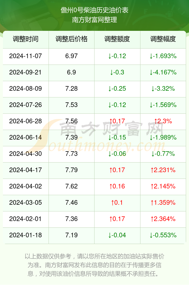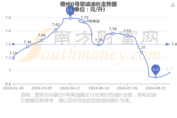 儋州0号柴油11月27日的最新价格为6.97元/升,调整时间为11月7日,相对上次调整减了0.12元。