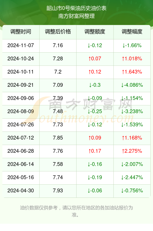 韶山市0号柴油历史油价表
