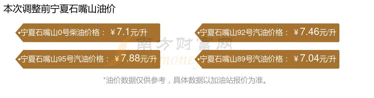 宁夏石嘴山今日油价
