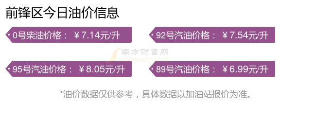 前锋区汽油、柴油11月27日每升的价格为11月7日调整后的价格,具体油价为:92号汽油7.54元;95号汽油8.05元;89号汽油6.99元;0号柴油7.14元。