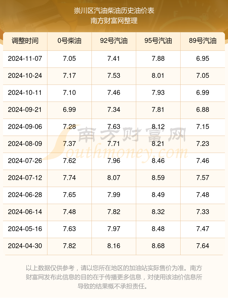 以上油价信息是当前市场上最新油价信息,油价数据仅供参考,实际在售油价可能有小幅偏差,请以您所在地区的加油站实际售价为准。