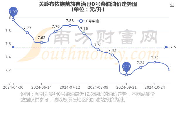 关岭布依族苗族自治县0号柴油历史油价走势图