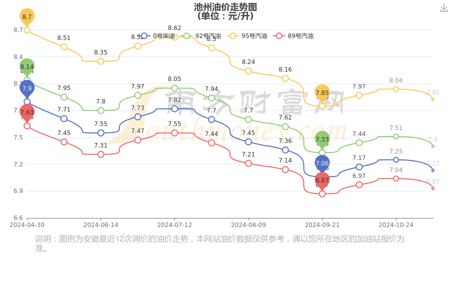 油价数据仅供参考,请以您所在地区的加油站报价为准。油价发布此信息的目的在于传播更多信息,对使用该油价信息所导致的结果概不承担任何责任。