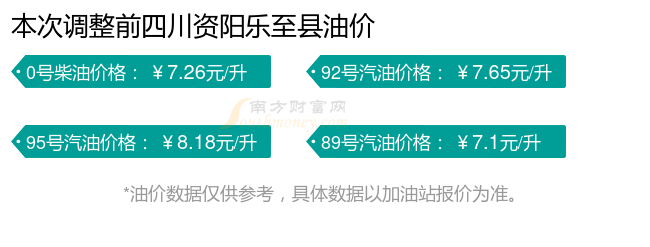 四川资阳乐至县汽油、柴油11月27日每升的价格为(油价调整时间是11月7日):92号汽油7.54元;95号汽油8.05元;89号汽油6.99元;0号柴油7.14元。