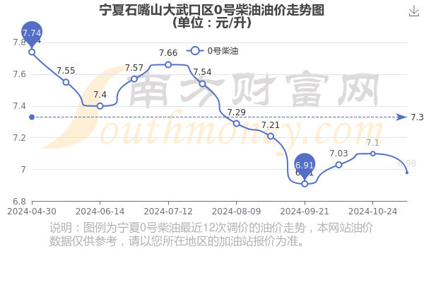 宁夏石嘴山大武口区0号柴油历史油价走势图