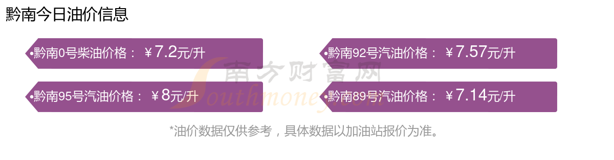 油价数据仅供参考,请以您所在地区的加油站报价为准。油价发布此信息的目的在于传播更多信息,对使用该油价信息所导致的结果概不承担任何责任。