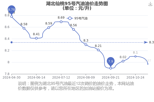 湖北仙桃95号汽油历史油价走势图