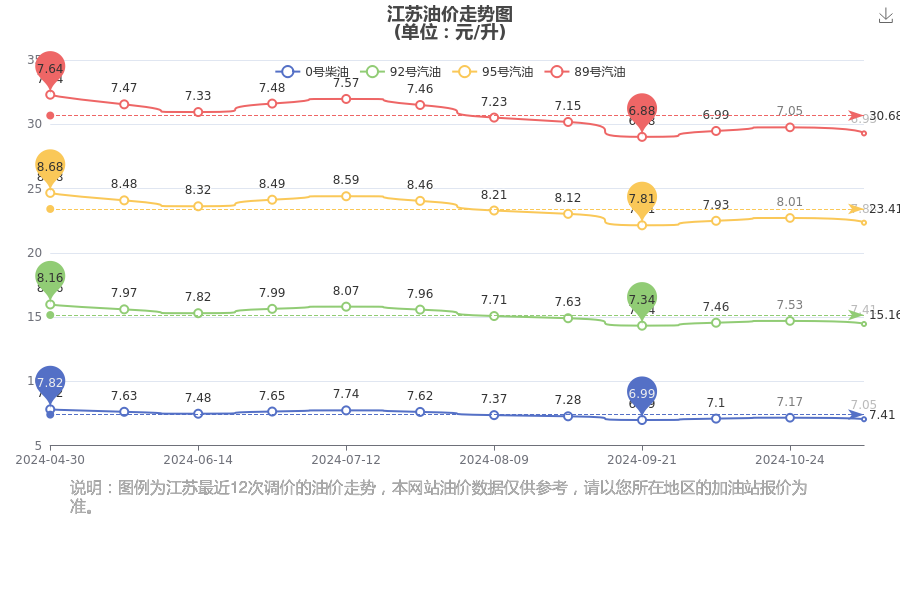 江苏汽油柴油油价走势图