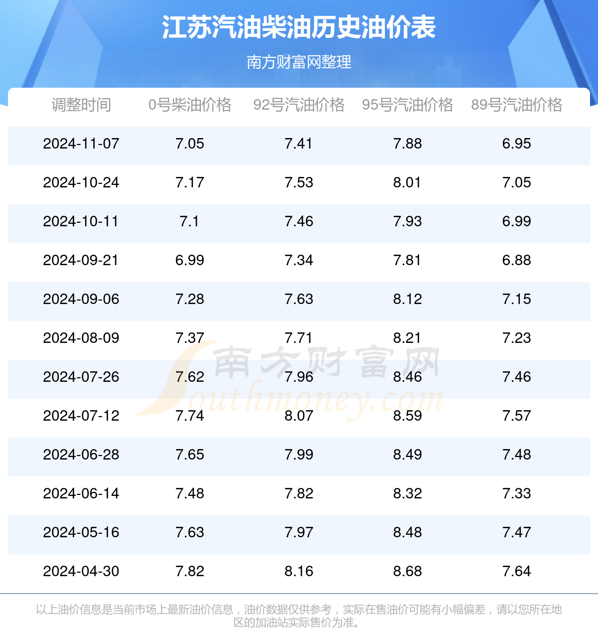 本站提供的油价数据仅供参考,具体数据以加油站报价为准。